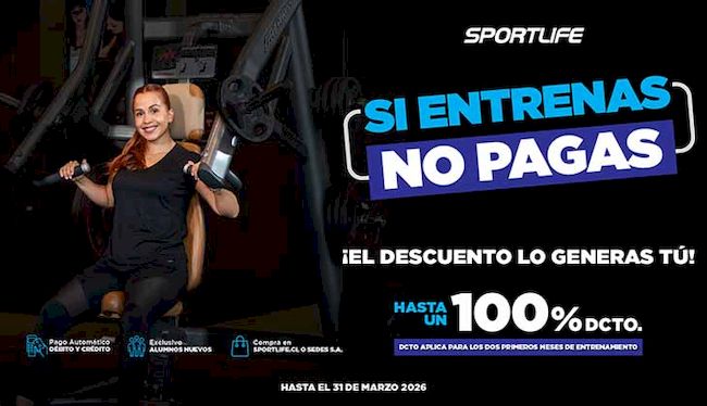 Con más de 30 años liderando la industria del fitness y con el propósito de transformar la vida de las personas a través de la actividad física, Sportlife lanzó por segundo año consecutivo su promoción Si entrenas, no pagas, una iniciativa que busca incentivar la constancia en el entrenamiento y ayudar a las personas a consolidar el hábito del ejercicio.